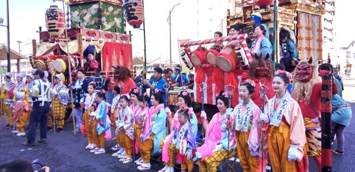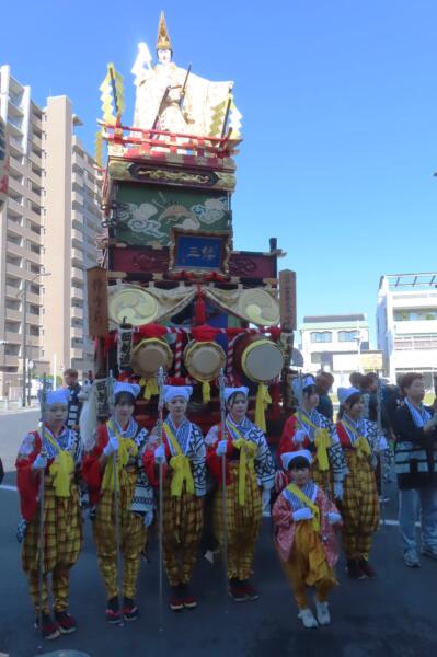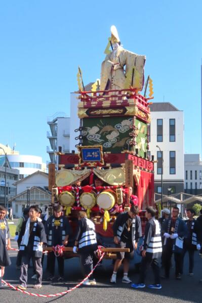 アイキャッチ画像は蔵の街大道りを練り歩く万町一丁目山車「人形は劉備玄徳です」
