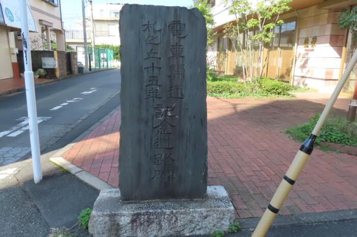 1922年国分寺駅まで電化された記念の「電車開通記念碑」