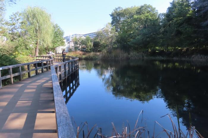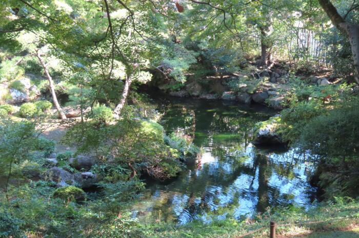 武蔵野崖線がら湧き出ている水で出来た「真姿池」環境省の名水にも選ばれています
