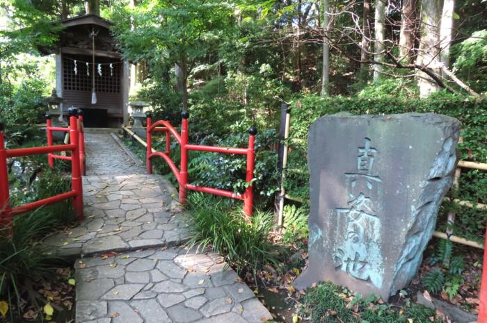 真姿の池湧水群を見守る社
