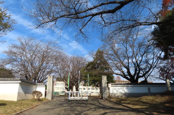 結城大本営跡地に白壁に囲まれて建つ 「結城小学校」