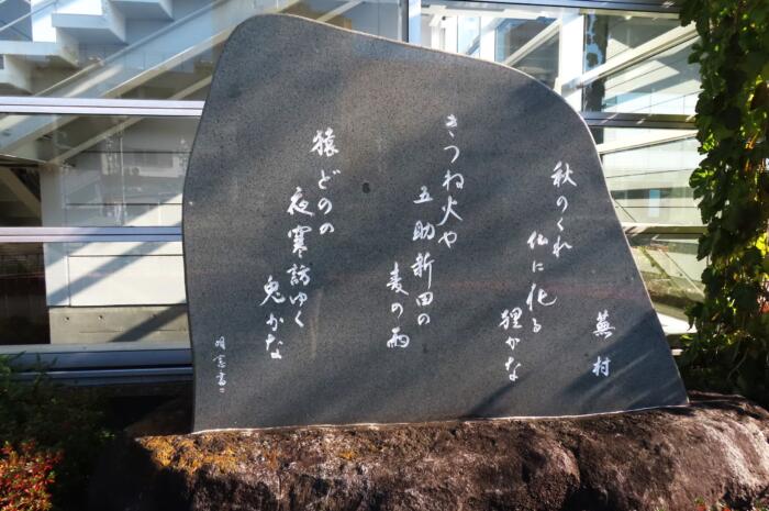 弘経寺等に滞在していた与謝蕪村に因んで市内各所に歌碑が設けられています 写真は駅前に設置されている歌碑