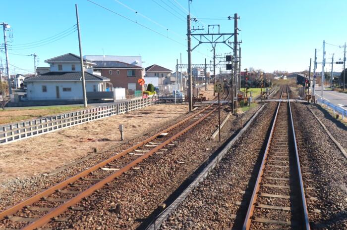 越生駅近くで合流する「右:JR八高線」「左:東武越生線」