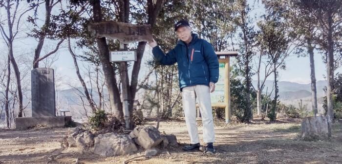 アイキャッチ画像は山城の面影を残す龍崖山(246m)山頂にて