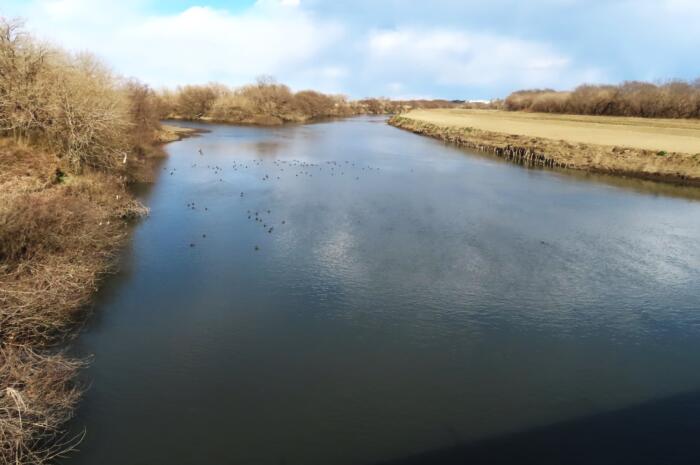 右の思川と左の渡良瀬川が合流している所 沢山の鳥達がおりました
