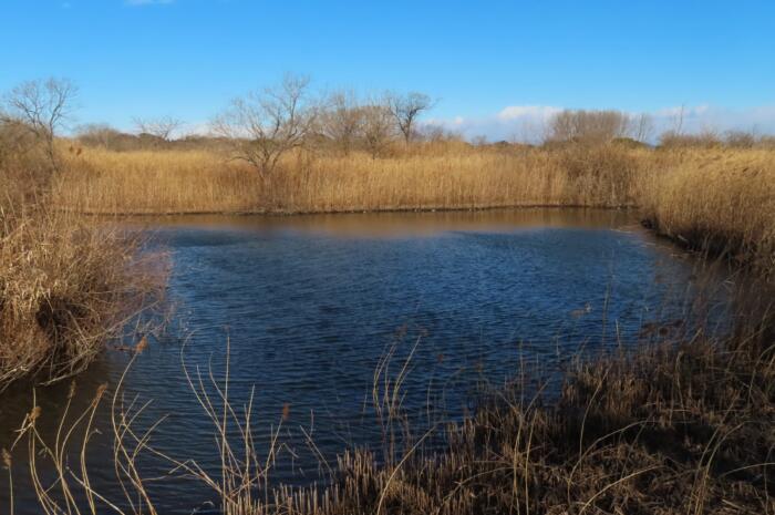 ヨシ原に囲まれた静かな多自然池