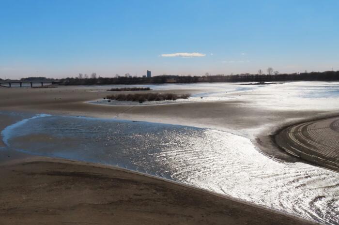 干し上げの為水が少なくなっている谷中湖谷中ブロック