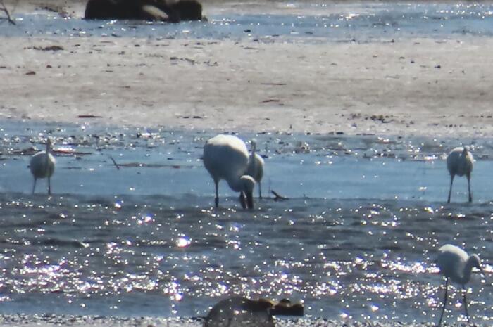 谷中湖谷中ブロックで餌を食んでいるコウノトリ (真ん中大きい鳥です)