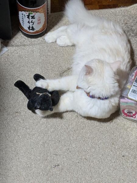 猫に人形が かわいそう༎ຶ‿༎ຶ 狩猟本能とは言うけど(╯︵╰,)