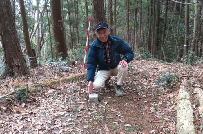 アイキャッチ画像は竈戸山山頂に設置されている三等三角点(293.21m)と共に