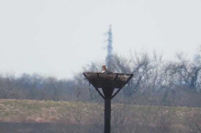 抱卵中のコウノトリ (コンパクトカメラのズームで撮っていますので画像が悪く済みません)