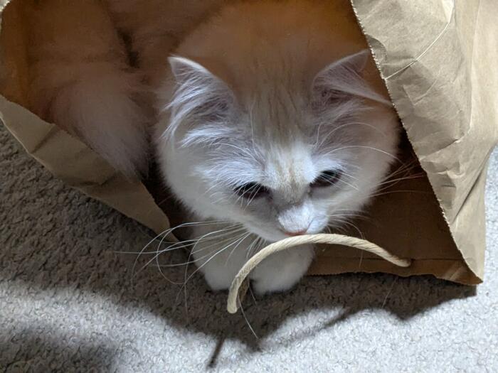 紙袋に! 入って遊んでる! 本当に入るんてますね! 手?足? 出して、チョカイを! ふ〜ん 感心\(°o°)/