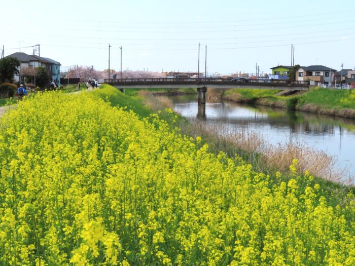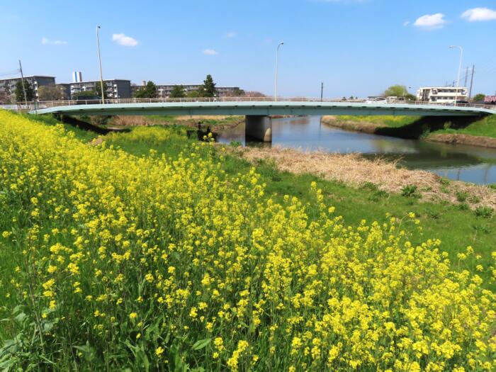 菜の花に囲まれる「一之橋」