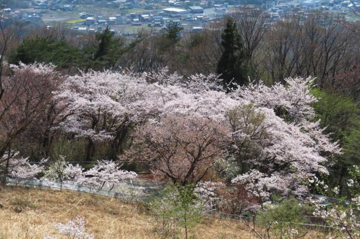 その昔、埼玉県に桜の名所を作ろうという発想から秩父市と皆野町にまたがる蓑山(みのやま)に、10年の歳月をかけて桜を植栽し、昭和54年4月に開園しました。その地形を生かして整備した県立美の山公園は、環境省より国民休養地に指定された総合野外レクリエーション施設です。山頂からの眺望はすばらしく、秩父連山をはじめ、赤城、日光連山をも望むことができます。