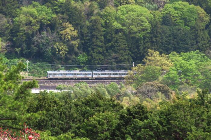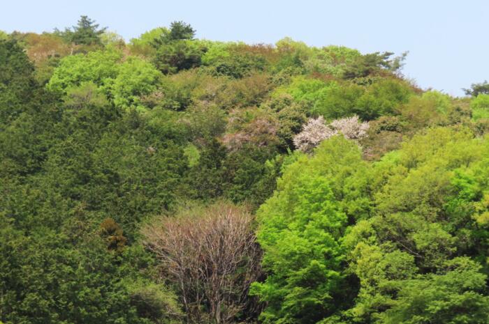アイキャッチ画像は金尾山山頂(229m) から新録に輝く寄居町矢那瀬地区を望む