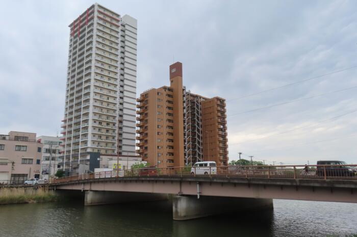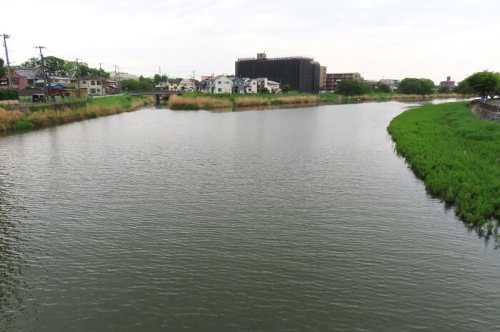 新町橋から右側の大落古利根川と左側の古隅田川の合流点