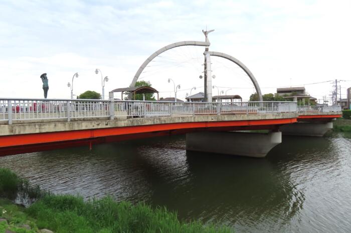 光と風」をテーマに、市の特産品である麦わら帽子をイメージして造られた「古利根公園橋」