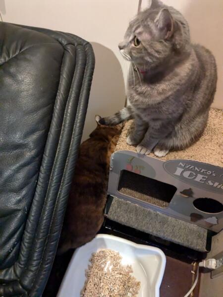 では無いですね(╯︵╰,) 下の猫をしっぽでチョッカイ! それを見守る 残り一匹! 三匹、揃って 写真を撮りたいんですが 今だ、撮れません