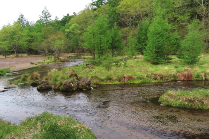 戦場ヶ原に沿うように流れる「湯川」
