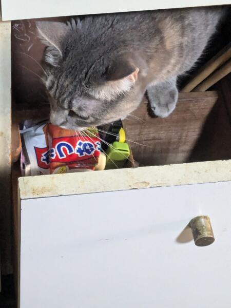 猫は、やはり! かつお節なんですかね! そとの様子を見ながら かつお節!