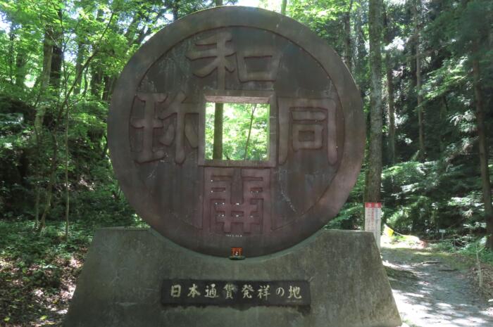 和同採掘露天堀跡にある「和同開珎」モニュメント
