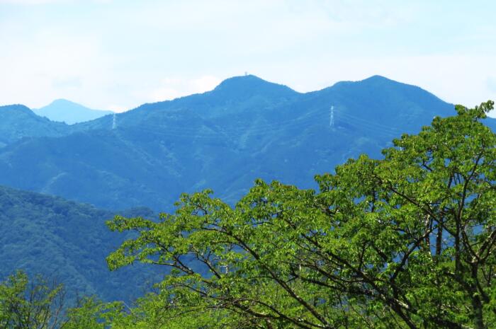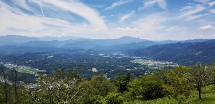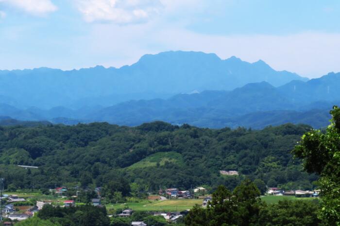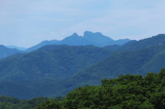 旧吉田町方面を望む 右奥に見える台形の山が「両神山」