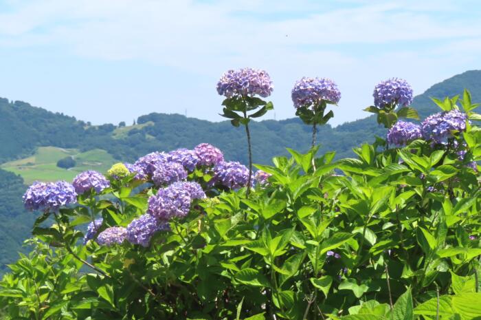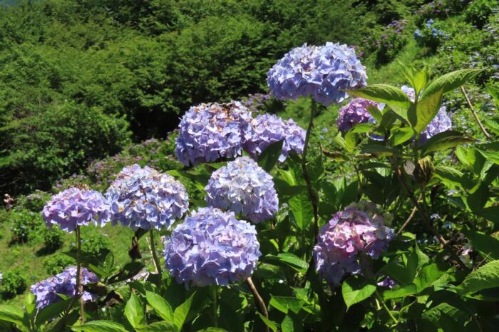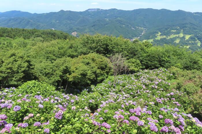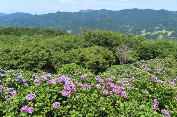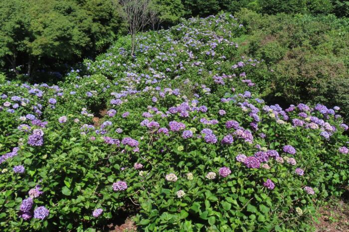 美の山東面に広がる「アジサイ園」約4000本のアジサイあります