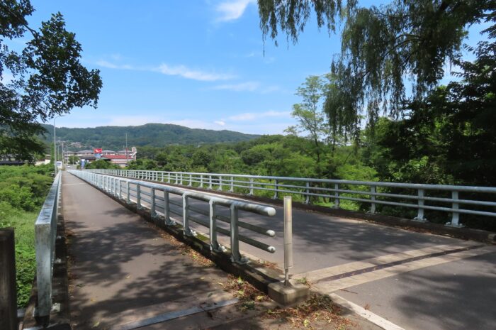 荒川に架かる柳大橋 橋のたもとに柳の大木があります
