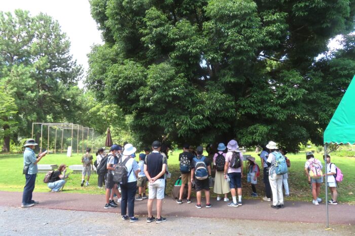 「ニッキ」の木についてガイドさんから説明を聞く参加者