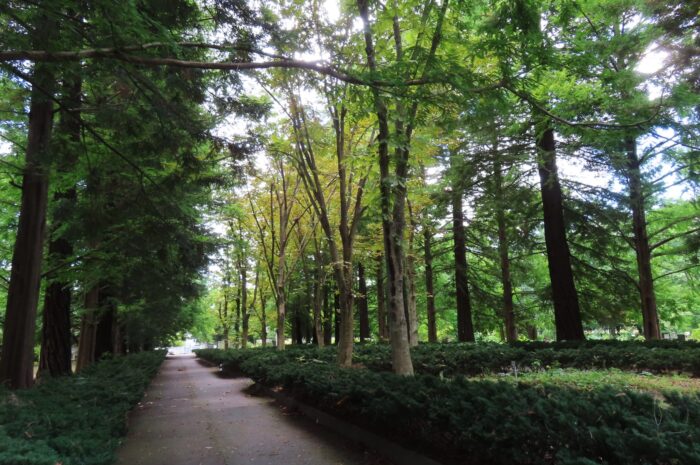 国内でも少ない「メタセコイヤとセコイヤ」の混成並木 真中には栃の木があります