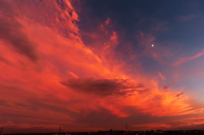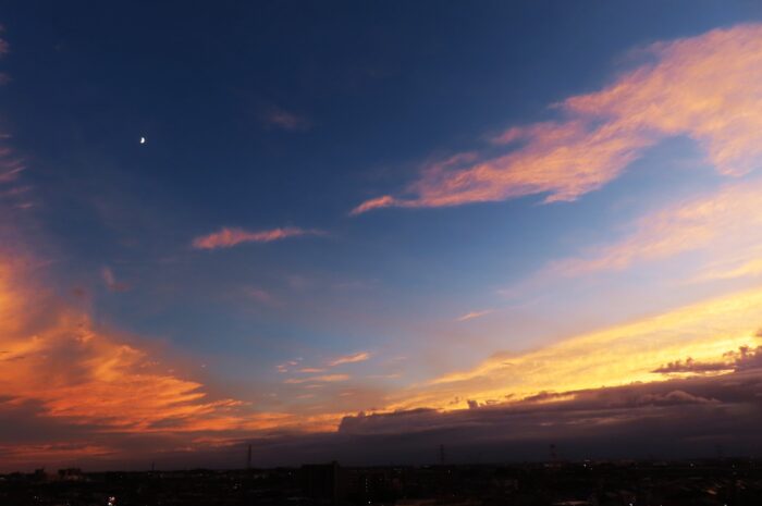 2025.08.01 村田 均 akasaka 茜空 台風の影響か久しぶりに夕方の空が上弦の月を包むように染まつたのでご案内いたします。 本日21時41分上弦の月です 3 件のコメント 燃えるような空。 凄みがありますね。 返信する こんな感じに なるんですね!! 自然は凄いですね!! 返信する 凄い色!! 空もレッツファン!! 返信する コメントを残す コメントをキャンセルメールアドレスが公開されることはありません。 ※ が付いている欄は必須項目ですコメント ※ 名前 メール サイト 次回のコメントで使用するためブラウザーに自分の名前、メールアドレス、サイトを保存する。