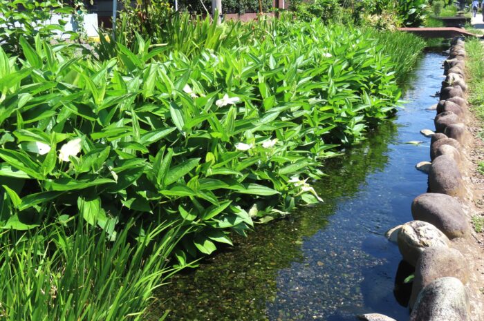 アイキャッチ画像は野火止用水の清流に寄り添うように咲くハンゲショウ