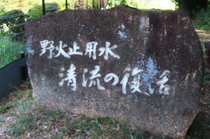 復活を記念して設置された「野火止用水清流の復活」碑