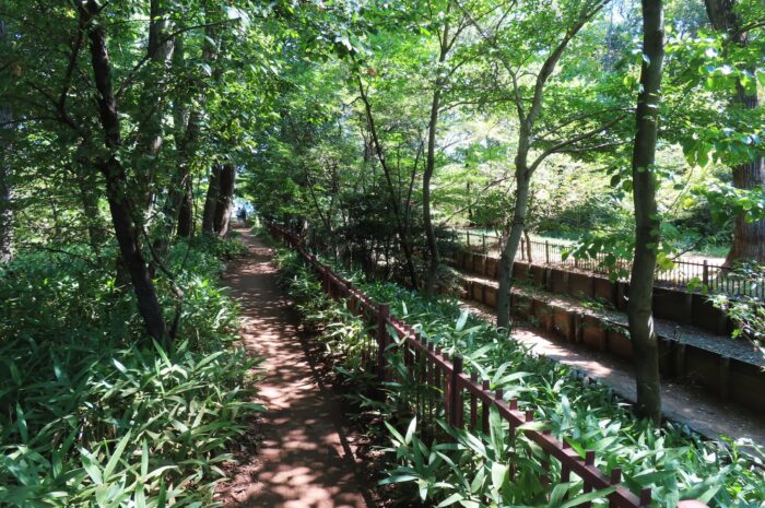 途中からは江戸時代に開削された状態で残られている「野火止緑地」 右側に流れがあります