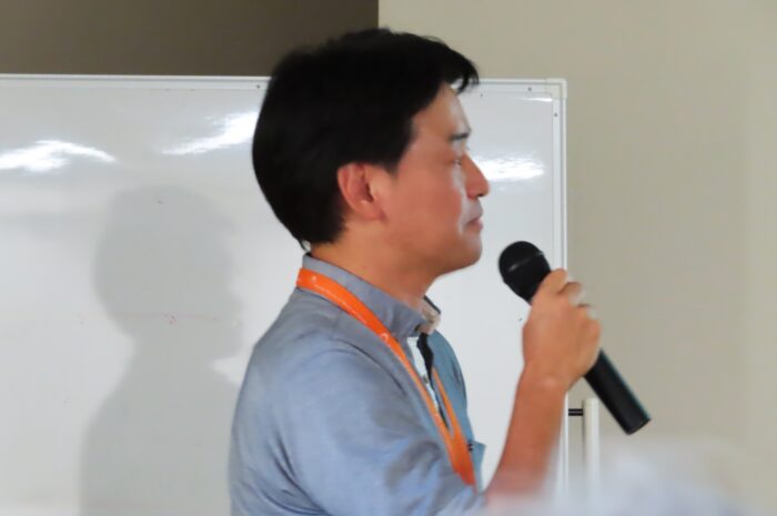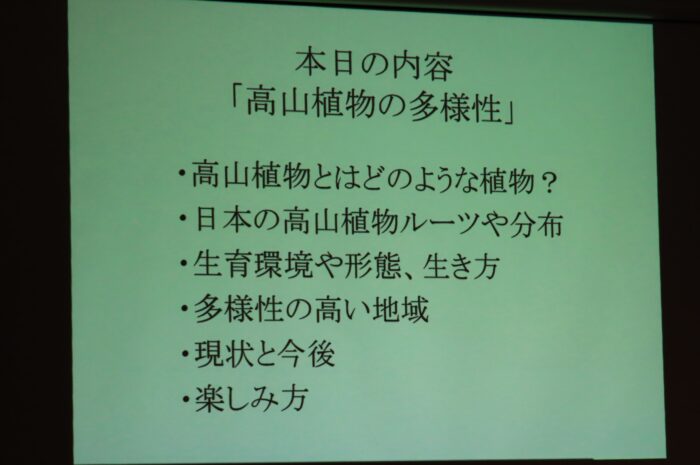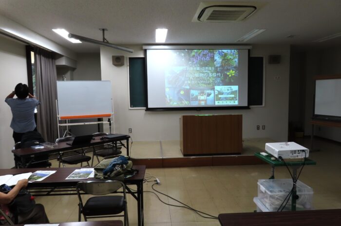 講師の「植物研究部の村井良徳先生」公演中