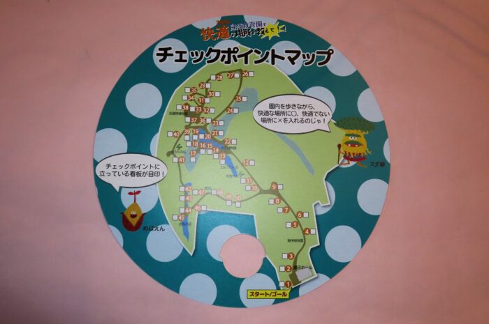 園内を回るときに使用されるチェックポイントマップ団扇