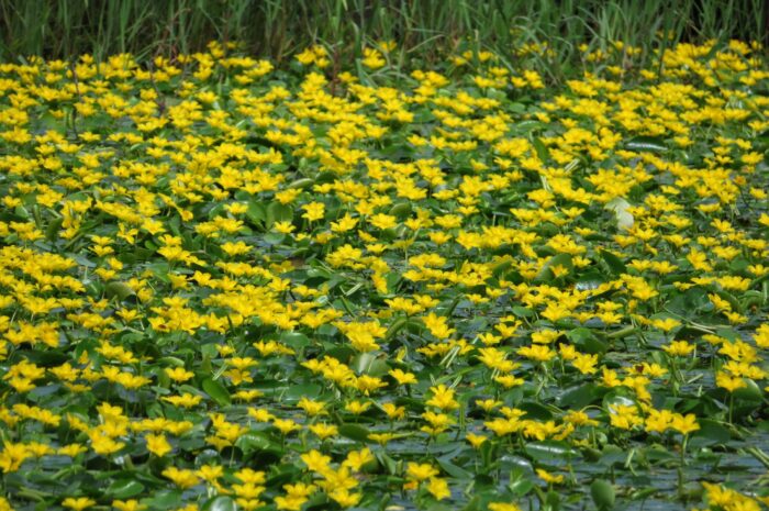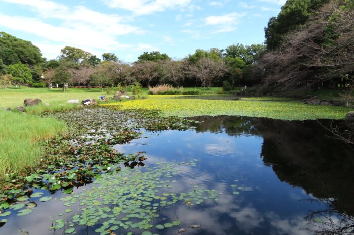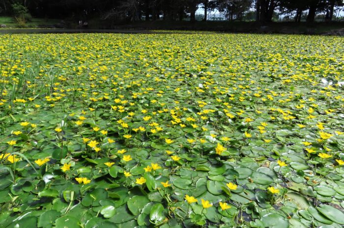 アイキャッチ画像はアサザで覆われている見沼氷川公園にある修景池