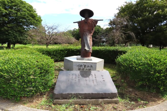 公園内にはこの地で生まれた唱歌「案山子」の作者、武笠三を記念し建立された案山子の銅像があり、唱歌「案山子」の歌詞が刻まれています