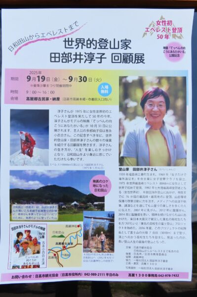 高麗郷古民家(納屋)で開かれている「田部井淳子回顧展」日高市に縁がある関係で今月末まで開かれています