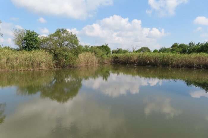静かに動植物の観察ができる「多自然池」