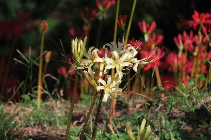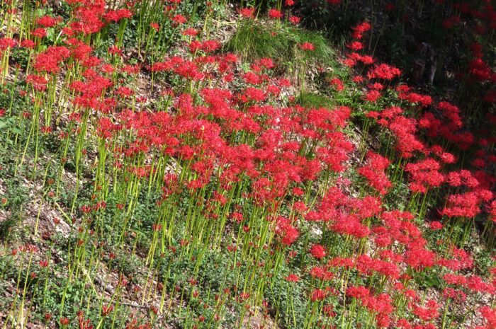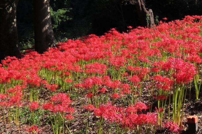 離山貝塚を整備して作られた「離山公園」春は桜、秋は彼岸花が楽しめます