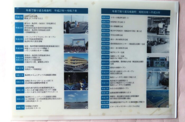 板倉町70周年オリジナルクリアファイル(裏) 歴史が記載されています