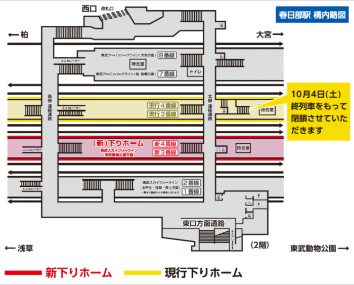 2025.09.29 事務局 akasaka 春日部駅仮下りホーム供用開始 春日部駅改良工事も進み2025年10月5日(日曜日)初列車より、スカイツリーライン下り(東武動物公園方面)仮下りホームの供用が下記図の通り始まります。 1 個のコメント そうなんだ\(°o°)/ 少しは便利になる!! のかな? 返信する コメントを残す コメントをキャンセルメールアドレスが公開されることはありません。 ※ が付いている欄は必須項目ですコメント ※ 名前 メール サイト 次回のコメントで使用するためブラウザーに自分の名前、メールアドレス、サイトを保存する。