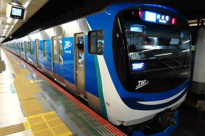 10月1日デビューした東京臨海高速鉄道(りんかい線)の新車(71-000形)に偶然会いましたのでご紹介いたします、車内は爽やかな意匠ですっきりしていました