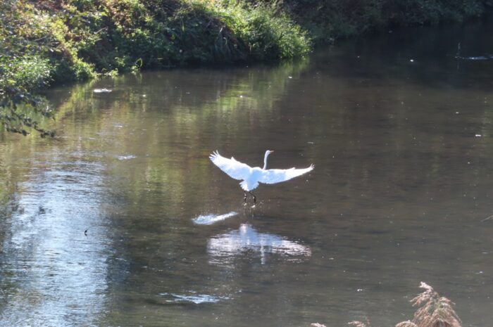 谷田川に降り立つダイサギ