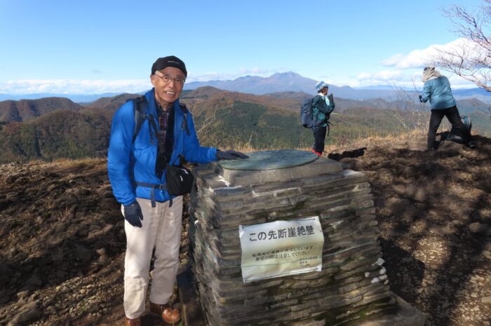 艫岩山頂(1344m)にて 奥に見える山は浅間山です