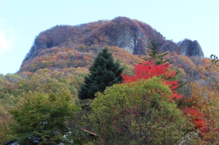 帰りに立ち寄って妙義温泉前に聳える妙義山塊の「相馬山」1104m