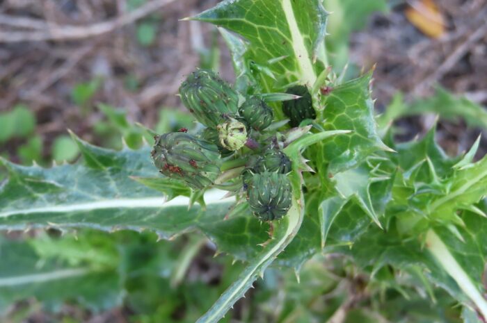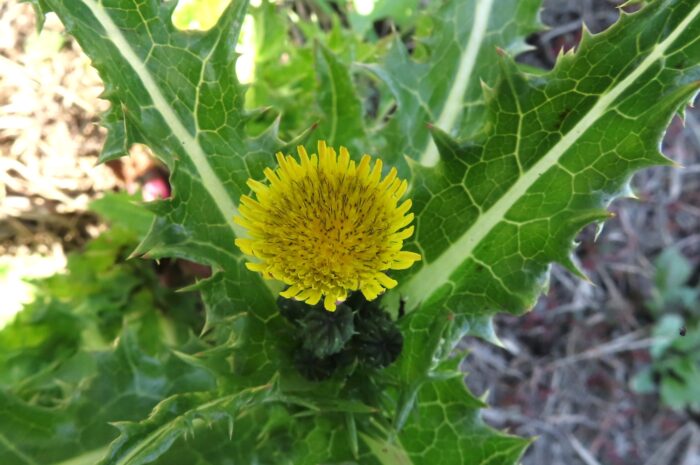 草刈り後の日当たりの良い場所に季節外れに咲いていた「ノゲシ」の花芽