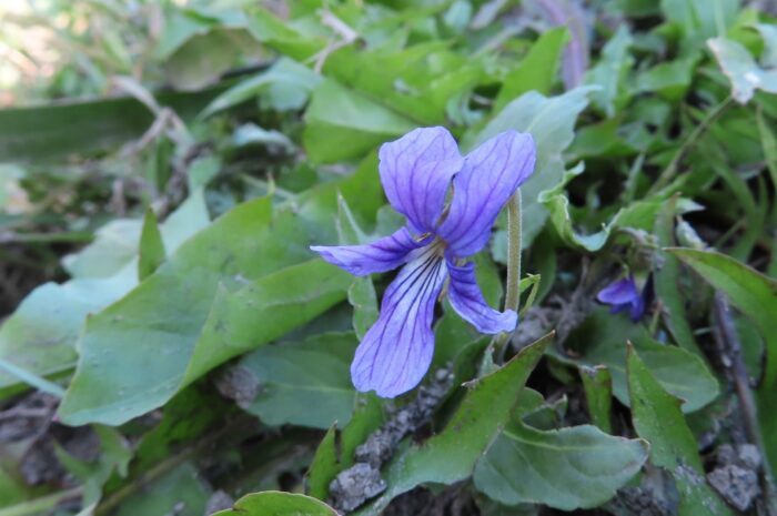 草刈り後の日当たりの良い場所に季節外れに咲いていた「スミレ」タチツボかな?