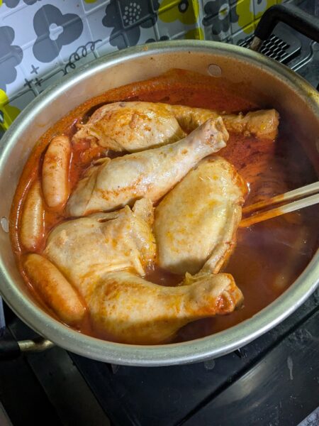 本当は、丸鶏をトマト鍋で 煮る! 予定でしたが 丸鶏が、無くて モモ肉になってしまいました(╯︵╰,) ちょっと残念 誰も居なんで! 好きにハロウィン仕様で! なかなか減らない(╯︵╰,)  …